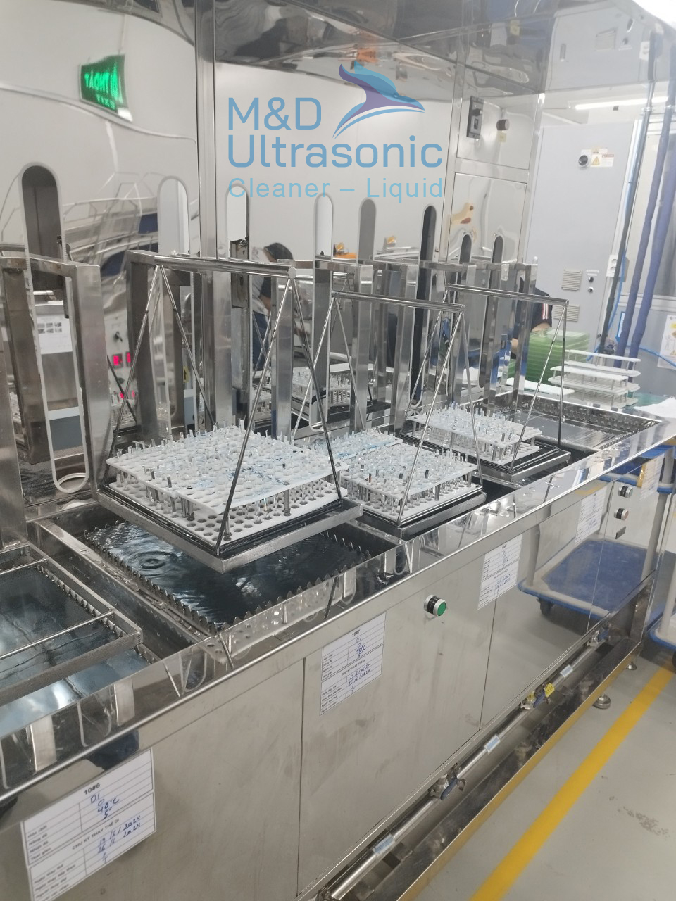 Máy rửa 11 tank được thiết kế theo yêu cầu với 3 loại tần số khác nhau,nâng hạ theo chu trình để đáp ứng quy trình rửa thấu kính